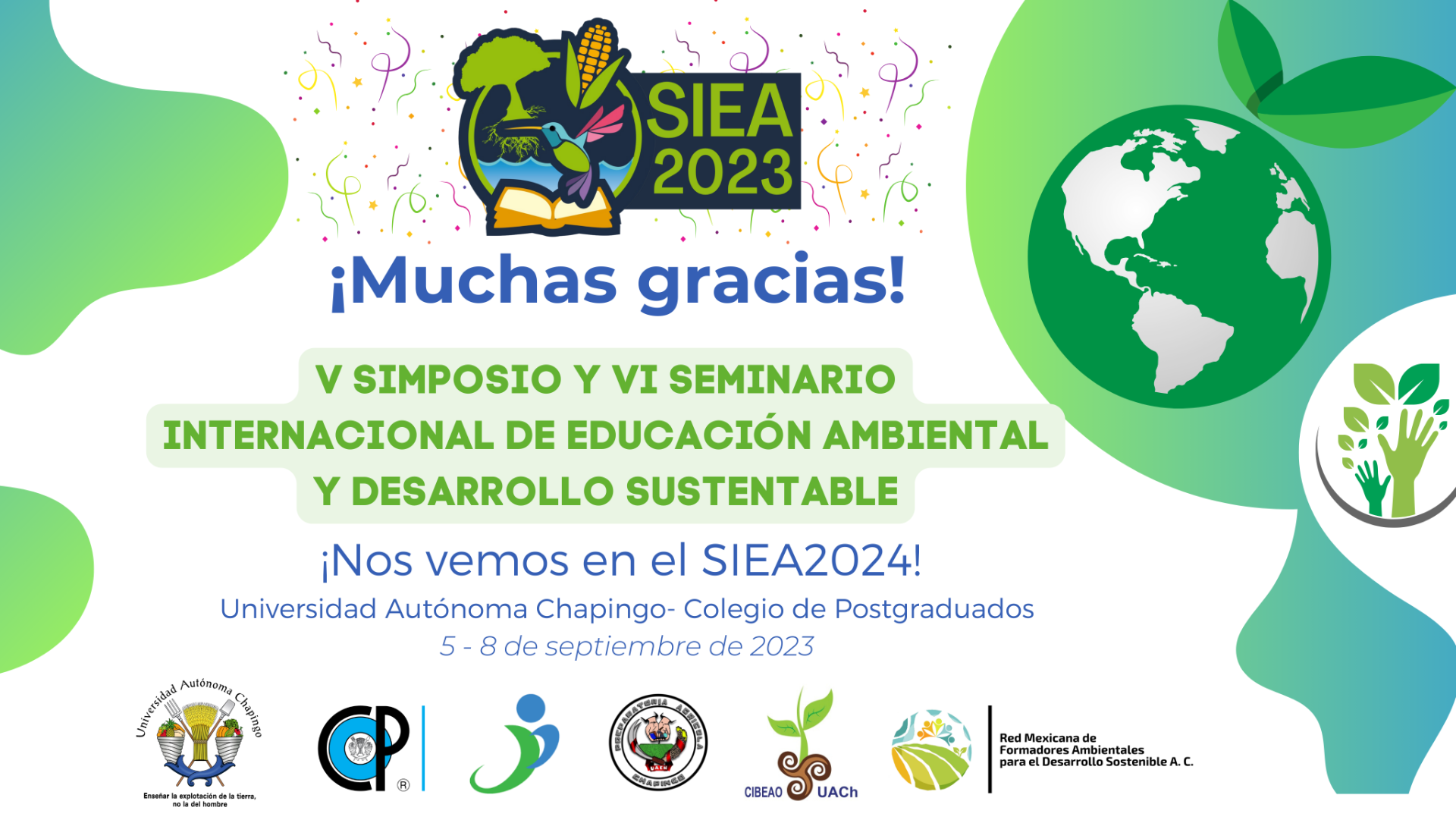 El SIEA2022, fue desarrollado con éxito en una modalidad híbrida en las instalaciones del Colegio de Posgraduados, campus Montecillo, Texcoco, México, en los días 28, 29 y 30 de septiembre del 2022. Agradecemos a todos los que hicieron posible esta edición, ya que sin su colaboración este proyecto no sería el mismo. Nos vemos en el 2023.
